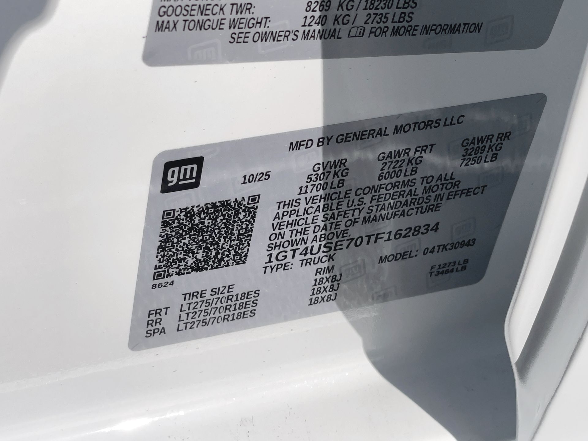 - 18" LT275/70R18 all-terrain, blackwall spare tire